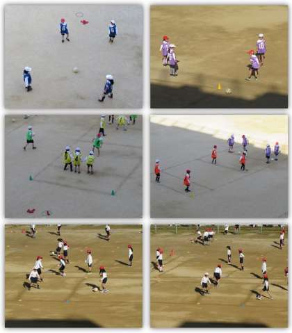 1月25日(木) 2年生の体育の学習です。運動場で、ボールを蹴る運動に取り組んでいます。