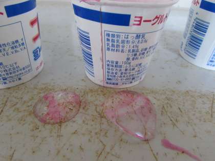 今日も大阪は厳しい寒さです。1年生の子どもたちが、ヨーグルトの容器に水を入れ、廊下の靴箱の上に置きました。しばらくして、見てみると、氷ができていました(水には、絵の具で色をつけています)。