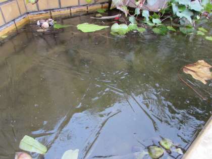 校庭の池にも、氷が張っていました。