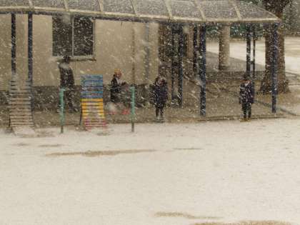 大阪市内では、降雪自体が珍しく、今日の放課後、校庭に降ってきた雪に、子どもたちもはしゃいでいました。