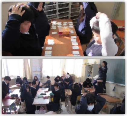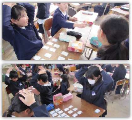 4年生の国語の学習です。1対1で、百人一首の勝負です。