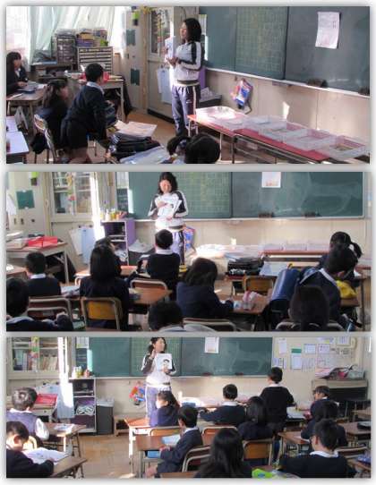 3年生のEnglish Timeの様子です。フラッシュカードを使って、挨拶の練習をしています。