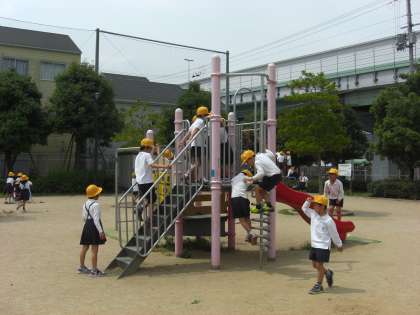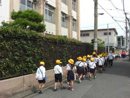 2年生は、生活科の学習で、校区探検をおこないました。校区の北側へ向かい、大きな公園で遊びました。道路の歩き方、交差点の渡り方、公共の公園での遊び方、遊具の使い方など、たくさんのことを勉強できました。