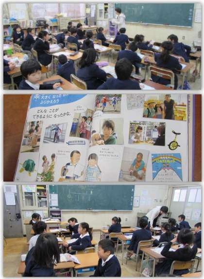 2年生の生活科の学習です。これまでの自分の生い立ちをふり返り、できるようになったことを考えました。画像は、ペアで、自分の考えを出し合い、交流している場面です。