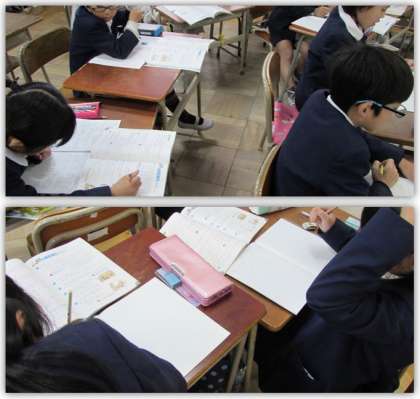 3年生の算数の学習です。かけ算の筆算の計算練習に取り組んでいます。