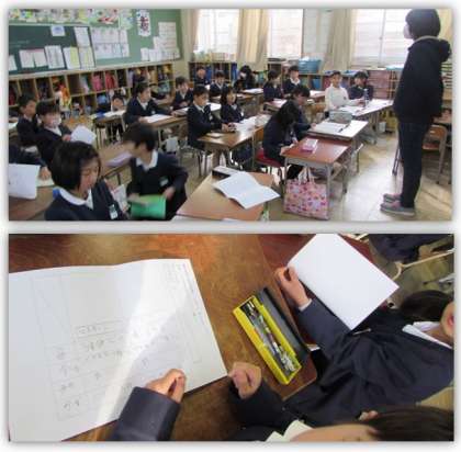 2年生の国語の学習です。2つの物を比べて、同じところ、違うところを見つけ、説明します。今日は、各自が題材を決め、表にまとめていきました。