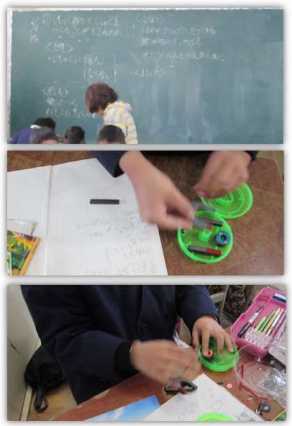 3年生の理科の学習です。磁石に引き付けられた鉄釘が、磁石になっているかどうかを調べました。