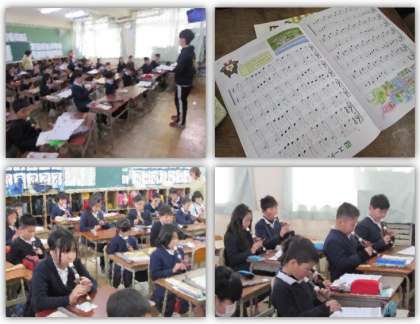 3年生の音楽の学習です。リコーダーで『聖者が町にやってくる』『エーデルワイス』などを演奏しました。