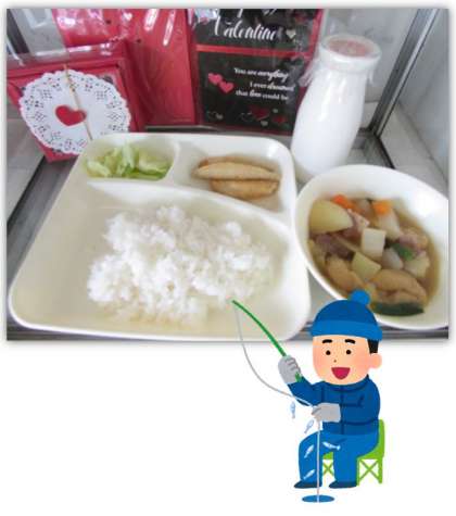 わかさぎは、ししゃもと同じ、キュウリウオ科の魚です。給食に出る「わかさぎフライ」は、新鮮なわかさぎを丸ごとフライにしていて、魚にある臭みや苦みが少なくなっています。骨ごと食べられるので、骨を丈夫にするカルシウムが取れ、噛む力も強くなります。