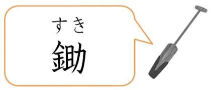 すき焼きの「すき」は、畑で使うスコップのような道具の名前です。昔、畑仕事をしている時に、「すき」に、いのししの肉などをのせて焼いたことから「すき焼き」と呼ばれるようになりました。