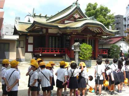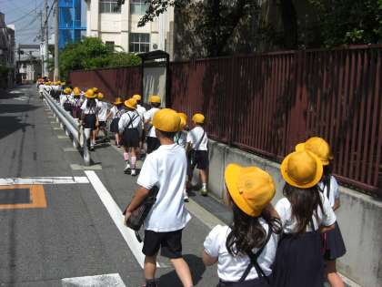 今日、2年生は2回目の校区探検に行ってきました。今回は、校区の南側に向かいました。田端公園、玉出西公園、つみき公園(千本南公園)に行きました。