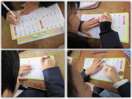 2年生の国語の学習です。漢字ドリルを使って、学習をしています。2年生は、3学期のまとめに取り組んでいます。