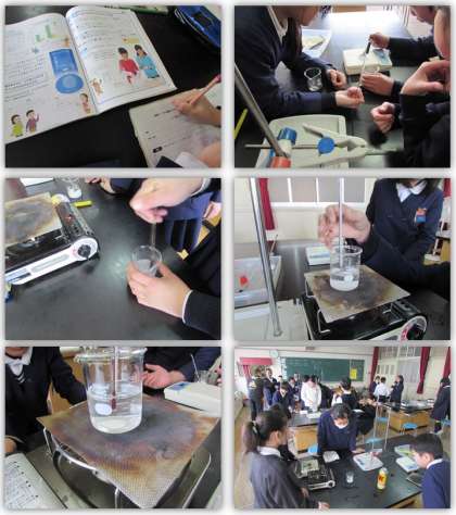 5年生の理科の学習です。溶け残ったミョウバンを、温度を高めることで溶かすことができるのか、実験して確かめました。