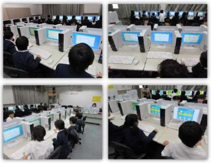 1年生がパソコン室に来ました。IDやパスワードを自分で入力し、マウスレッスンなどをしました。
