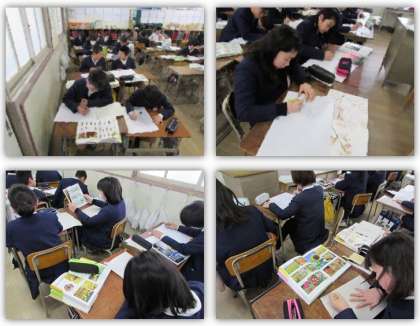 2月21日(水) 5年生の図画工作の学習です。木版画に取り組みます。各自が版画の題材を選んでいます。