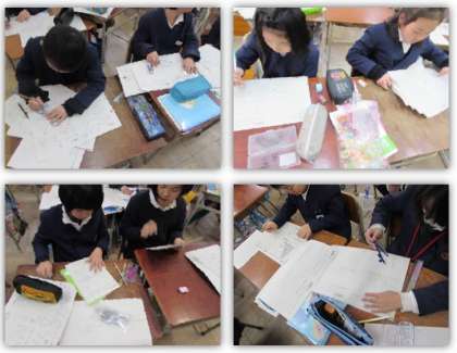 3年生の算数の学習です。二等辺三角形と正三角形の練習問題に取り組みました。