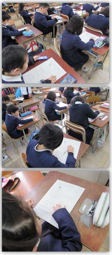 2月22日(木) 3年生の算数の学習です。『三角形』のテストに取り組みました。