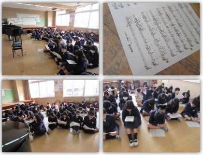 5年生の音楽の学習です。『地球星歌』の、メロディーや歌詞を確認しています。