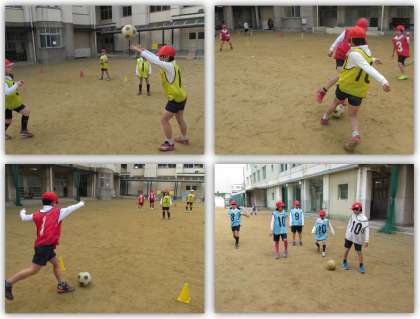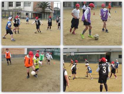4年生の体育の学習です。ミニサッカーのゲームを行っています。