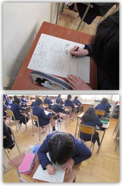2月26日(月) 5年生の算数の学習です。『正多角形と円周の長さ』のテストに取り組んでいます。