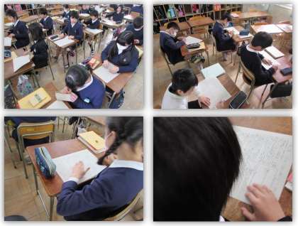 2月28日(水) 6年生の国語の学習です。『プロフェッショナルたち』のテストに取り組んでいます。
