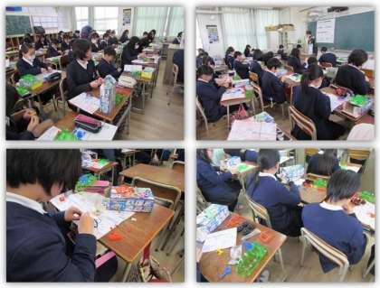 3月2日(金) 5年生の理科の学習です。芯にエナメル線を100回巻いたものを作ります。