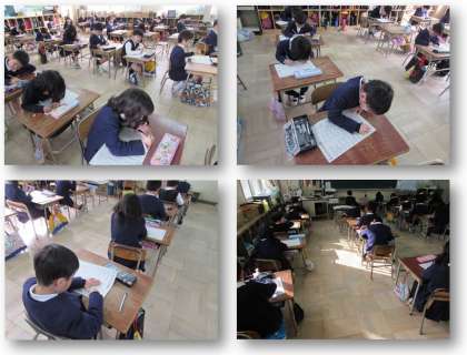 1年生の国語の学習です。漢字テストに取り組んでいます。『はやくねる』『はやしのき』『ひがもえる』