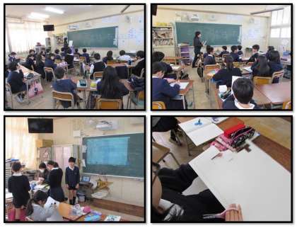4年生の算数の学習です。立方体の展開図を描き、それを切って組み立てて、立方体になることを確かめました。