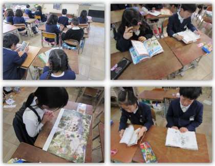 水曜日の朝は読書タイムです。画像は、2年生の読書タイムの様子です。各自が1冊本を選び、読んでいます。
