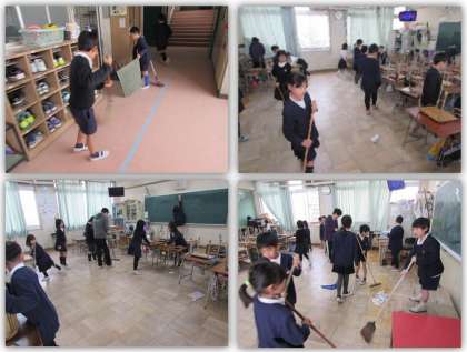 給食の後、全校一斉清掃です。3年生と4年生が協力して、清掃に取り組んでいます。一緒に清掃している姿を見ると、それぞれの頑張り、それぞれの良さに気付かされます。