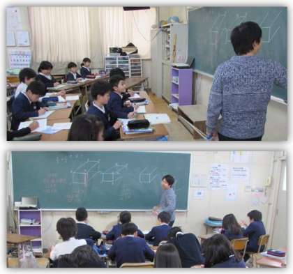 4年生の算数の学習です。直方体の辺と辺の垂直、平行の関係や、面と辺の垂直の関係を考えました。