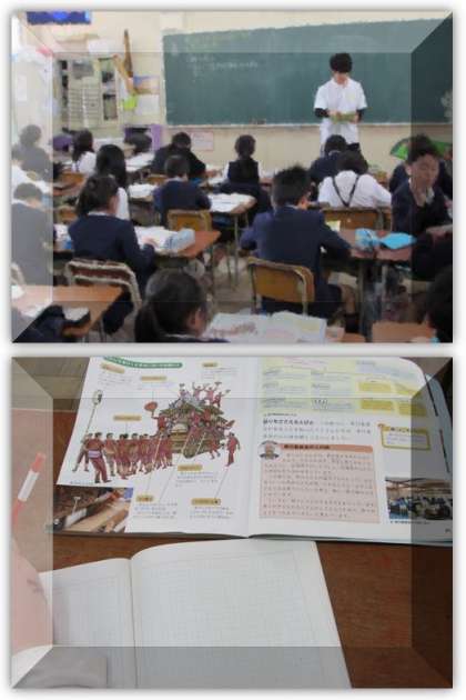 3年生の社会科の学習です。地域の人びとが受け継いできた文化財や年中行事について調べます。今日は『だんじり』について調べました。