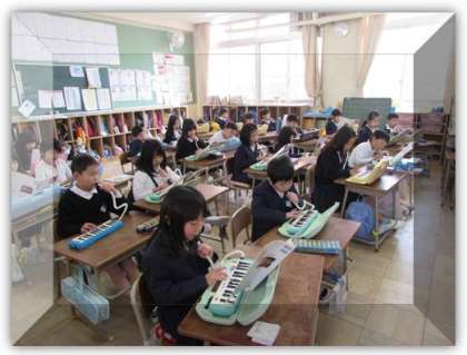 2年生の音楽の学習です。鍵盤ハーモニカで『こぐまの二月』の演奏をしています。