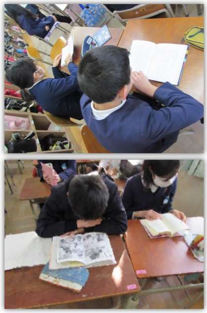 毎日、読書に励んできた6年生。小学校での『読書タイム』は今日で終わりですが、これからもたくさんの本と出会えることを期待しています。