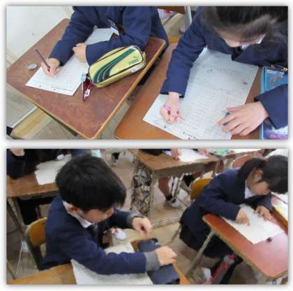 3年生の算数の学習です。わり算の力だめしの練習問題に取り組んでいます。
