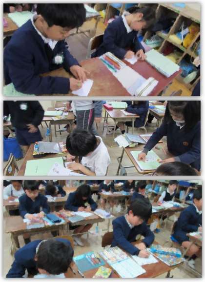 1年生の生活科の学習です。一年間、書いた絵日記などを『思い出ファイル』に綴じました。