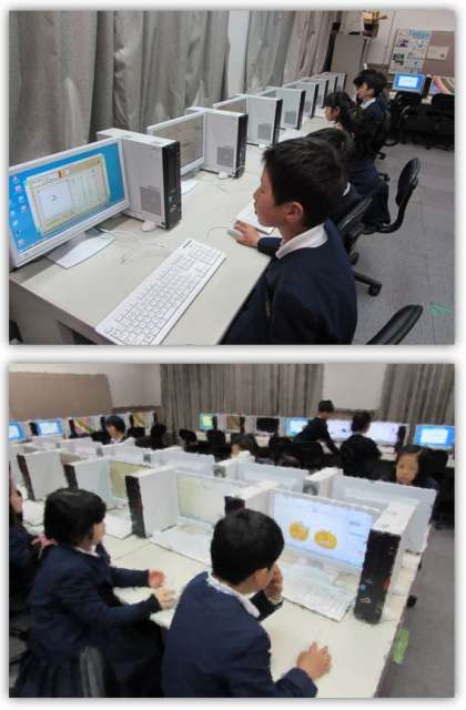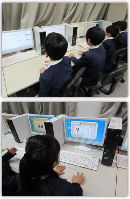 2年生の国語の学習です。パソコン室に行き、漢字クイズなどにチャレンジしました。