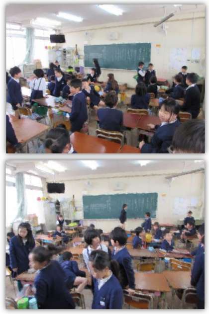 3月22日(木) 3年生がお楽しみ会をしています。グループ毎の出し物を楽しんでいます。
