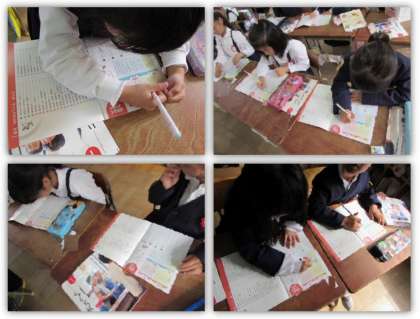 1年生の道徳の学習です。学校で楽しいこと、道徳の学習でがんばりたいことを考え、発表しました。