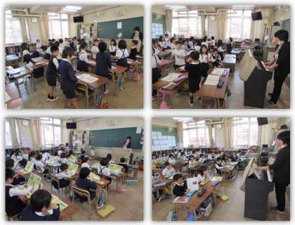 うたでともだちのわをひろげよう(2年生) 公開日 2018/04/20 更新日 2018/04/20 2年生 4月20日(金) 2年生の音楽の学習です。『子犬のビンゴ』や『かくれんぼ』を歌いました。 いいね(0)