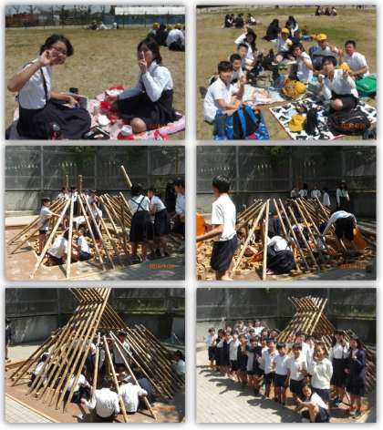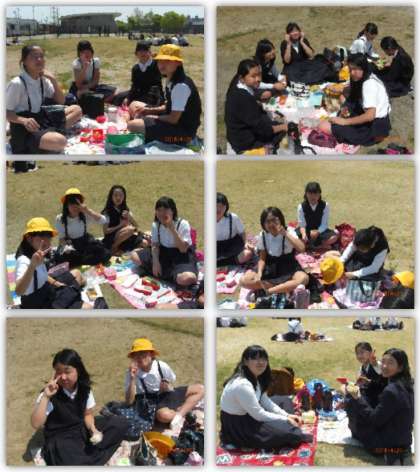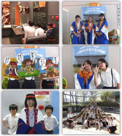お昼ご飯は、竪穴住居や高床式倉庫を見ながら、いただきました。初夏を思わせるほど、日差しが強く、汗ばむほどでしたが、芝生の上を吹く風は心地良かったです。