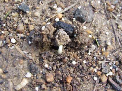 先週の木曜日に蒔いたアサガオの種。今日の朝、鉢を見て見ると、早くも2つ、芽が出ていました。これから毎日の水やりが、楽しみになってきます。