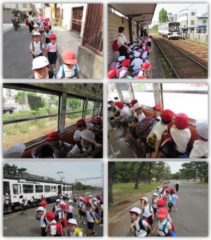 行きは、阪堺線の貸し切り電車で行きました。初めて乗る子も多く、窓から見える街の風景に思わず見入っていました。