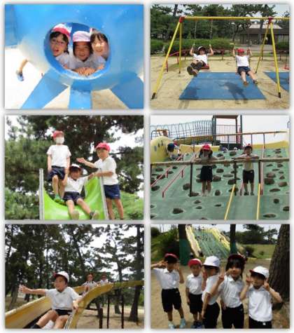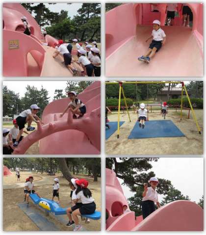 浜寺公園に着き、初めに『たこのすべり台』のあるところまで行きました。そこで、友だちと楽しく、汗をたっぷりかくまで遊びました。