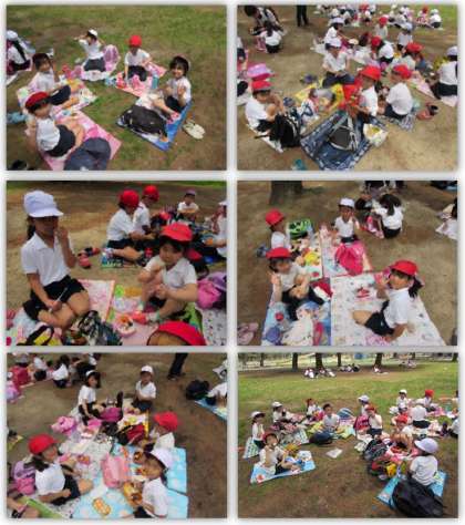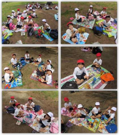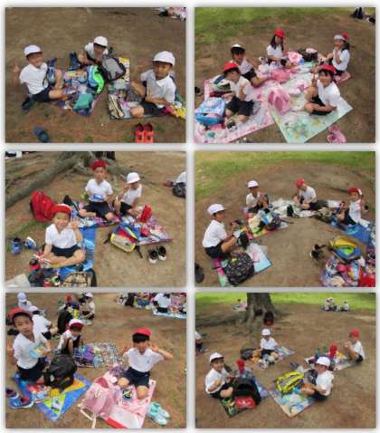 松林に移動し、昼食にしました。友達と一緒に食べるお弁当は、とてもおいしかったです。