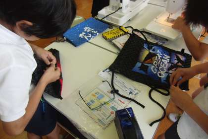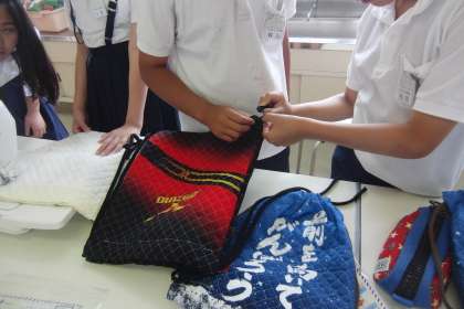 本日の家庭科で、ナップザック作りの続きに取り組みました。本日は、多くの子が仕上げることができ、アイロンで名札もつけることができました。