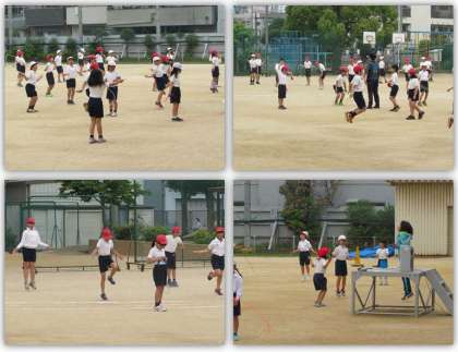 3年生の体育の学習です。準備運動として、縄跳びをしています。