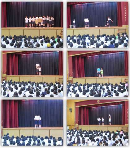 本日の児童集会は、6月9日(土)に行われる千本子ども祭りのPRを行いました。本日は、4・5・6年生の各クラスがPRを行い、来週の児童集会で1・2・3年生の各クラスがPRを行います。