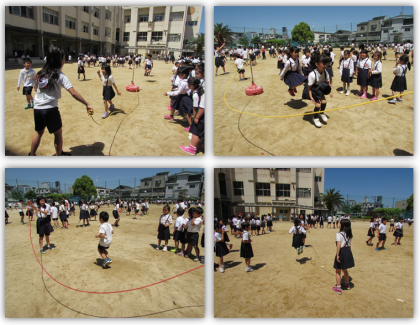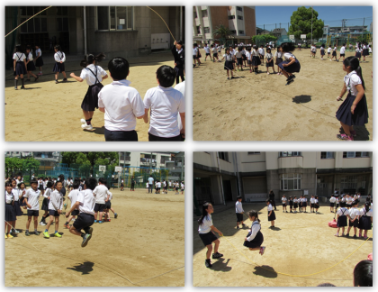 なわとび週間の4日目です。昨日は雨のため、中止になりましたが、今日は20分休みには運動場が使えるようになり、皆で大縄をしました。
