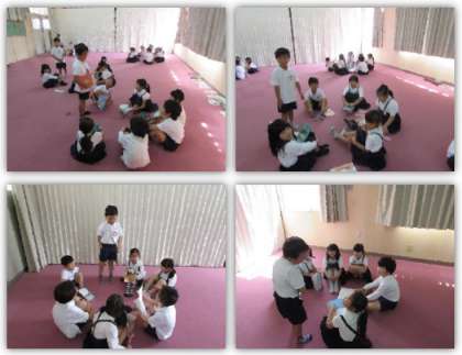 1年生の国語の学習です。グループを作り、自分が見つけたものを友達の前で発表しました。